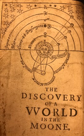 WILKINS, John, The Discovery of a World in the Moone. Or, A Discourse Tending to Prove That ‘Tis Probable There May Be Another Habitable World in That Planet [eBook via archive.org]. London: Printed by E[dward]. G[riffin]. for Michael Sparke and Edward Forrest, 1638.